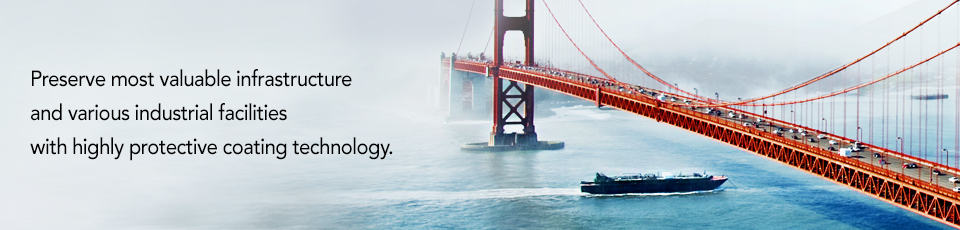 Recognized for its highly superior technology in various industrial areas, including steel bridges, power generation plants, tanks, transmission towers, wastewater treatment plants and offshore plants, our heavy duty coatings are used widely in protecting national infrastructure and various industrial facilities and are also highly recognized overseas for their technology.